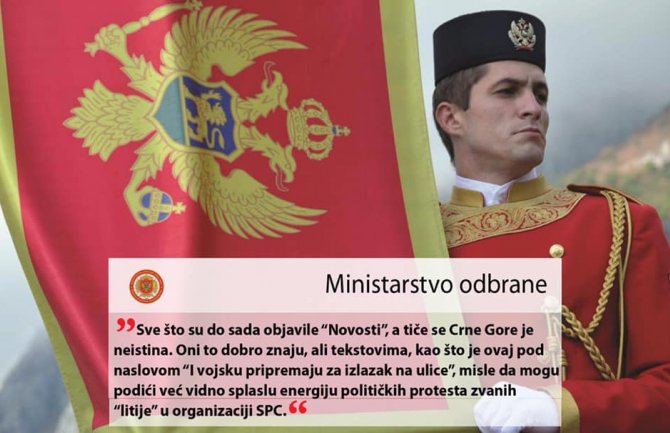 "Vojska Crne Gore izvršava svoju ulogu u skladu sa Ustavom i zakonima svoje zemlje i u tome je neće pokolebati ni SPC, ni srpski tabloidi, kao perjanice velikosrpskog projekta u regionu. Sve što su do sada napisali, a tiče se Crne Gore je neistina. Oni to dobro znaju, ali tekstovima, kao što je ovaj pod naslovom “I vojsku pripremaju za izlazak na ulice”, misle da mogu podići već vidno splaslu energiju političkih protesta zvanih ''litije'' u organizaciji SPC", navodi se iz Ministarstva odbrane.