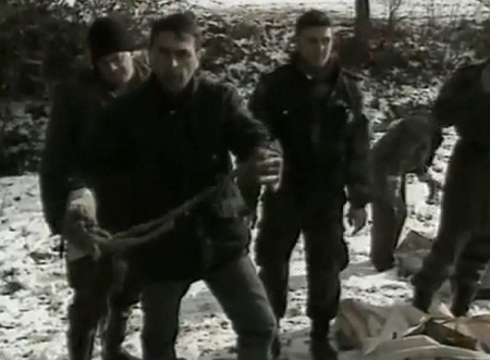 - Ovo je moj brat. Prepoznao sam ga po džemperu. Vidite kako su ga vezali ularom – pruža neimenovani sagovornik ruke ka kameri pokazujući kanap koji je upravo skinuo s raspadnutog leša.