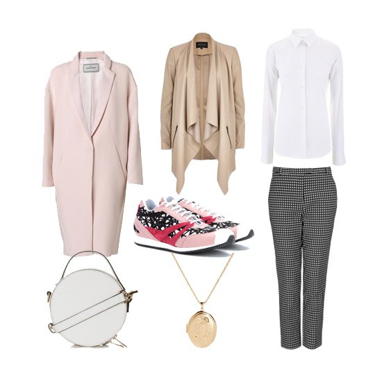 Priznajemo – ova kombinacija nam je bila najizazovnija za slaganje. Jer, suočimo se s tim, patike na poslu i nisu baš prihvaćena opcija. No, uspjeli smo! Uspjeli smo zahvaljujući pantalonama u crnoj i bijeloj boji (opet do gležnja), a na njih smo odjenuli strogu košulju koja je poslužila kao odličan balans patikama. Preko smo prebacili odličan tanki blejzer i kaput, a dodatnu dozu poslovnosti i ozbiljnosti smo dobili birajući ozbiljne modne dodatke poput okrugle torbe i dugog medaljona koji nam visi oko vrata.