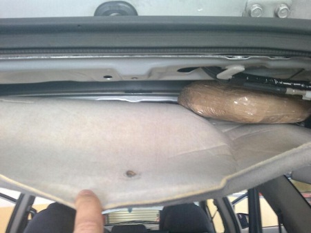 Pretresom je u krovu i patosu vozila kao i ispod instrument table pronađeno 19 pvc pakovanja koja su ukupno sadržala oko 10 kilograma materije za koju se sumnja da je opojna droga skank.
