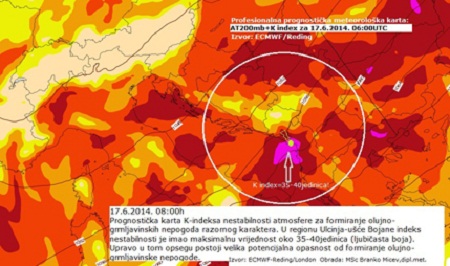 On dalje kaže da se 17. juna iznad područja Ulcinja i Jadrana javio najekstremniji indeks nestabilnosti, što znači da se upravo na tom lokalitetu očekivala pojava vremenskih nepogoda, koje se vezuju za pojavu olujno grmljavinskih oblaka.